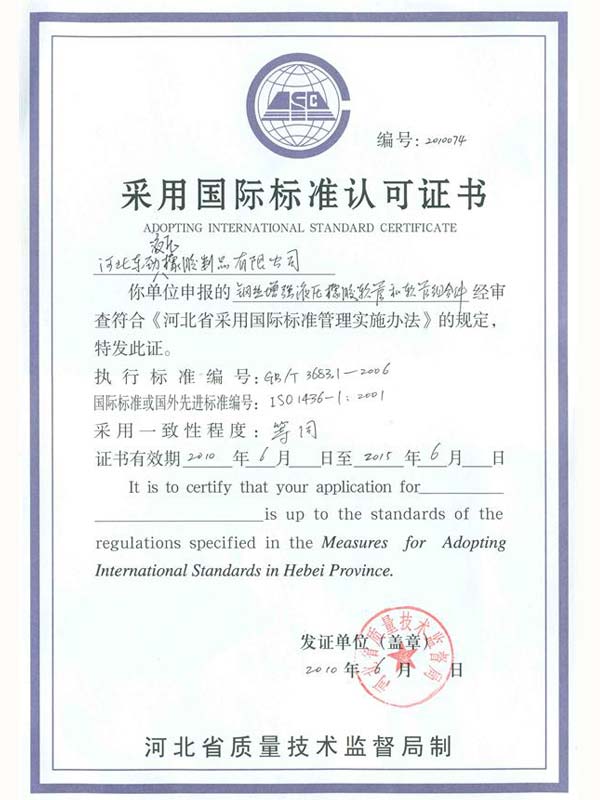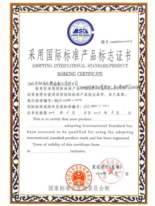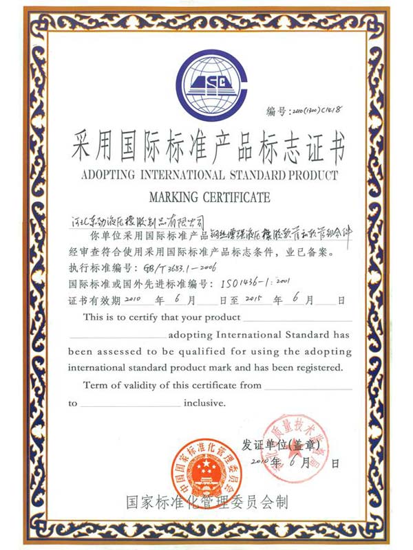 • 鋼編管國(guó)際標(biāo)準(zhǔn)產(chǎn)品標(biāo)志證書(shū)